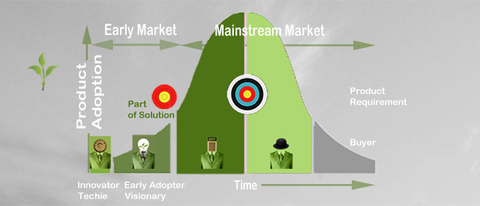 Entering the Early Market involves launching innovative new products, taking them from the lab and sold to first customers who will act as key references.It involves creating and launching new products, creating new organisations, entering new territories and creating new sales and marketing strategies. The sale at this stage is very technical and product oriented.